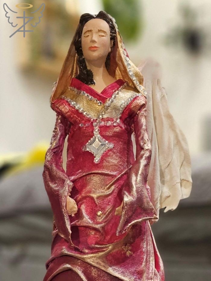 Anioł wykonany ręcznie metodą utwardzania tkanin przy użyciu Powertex - atestowane medium na bazie żywicy, o którym więcej informacji znajduje się na moim blogu.